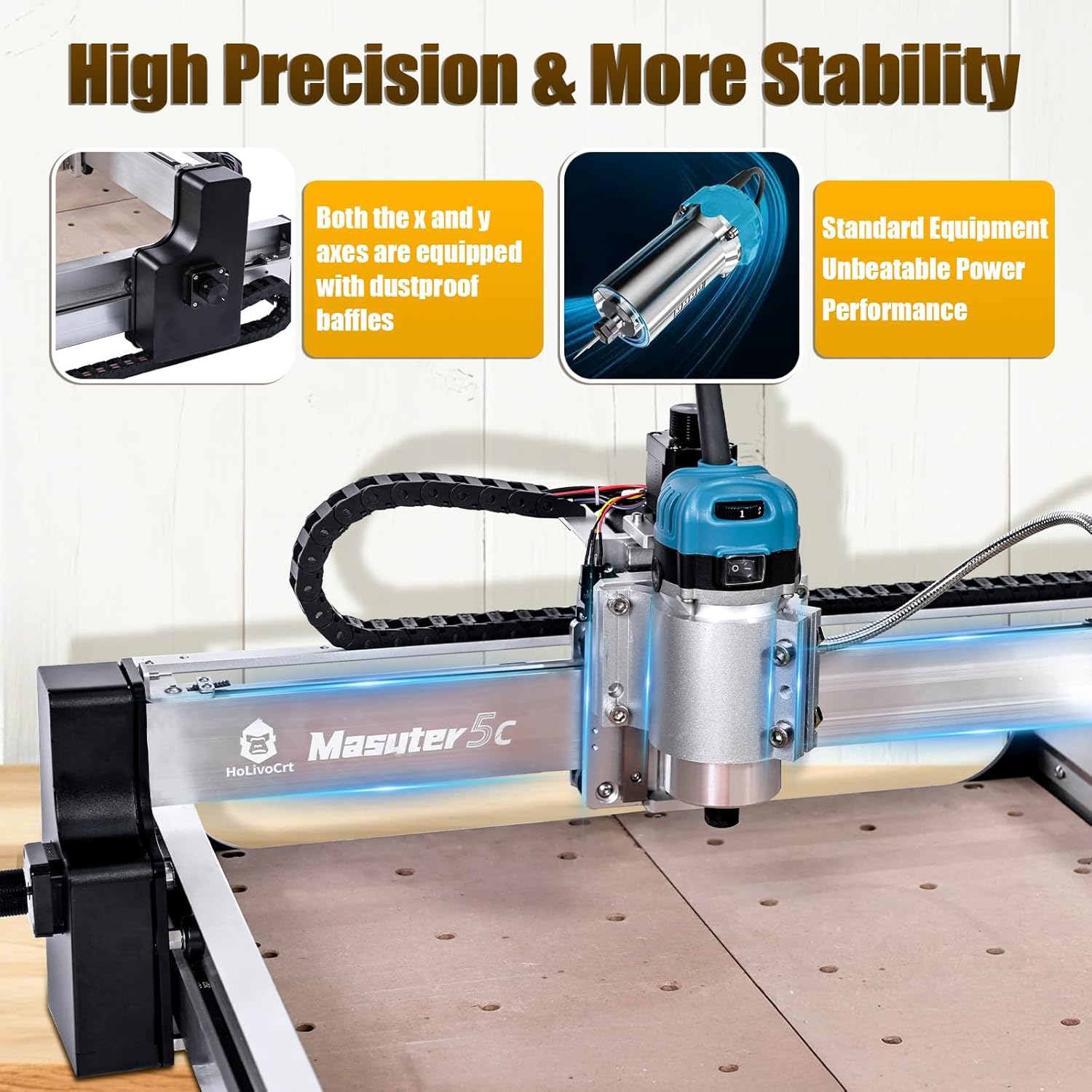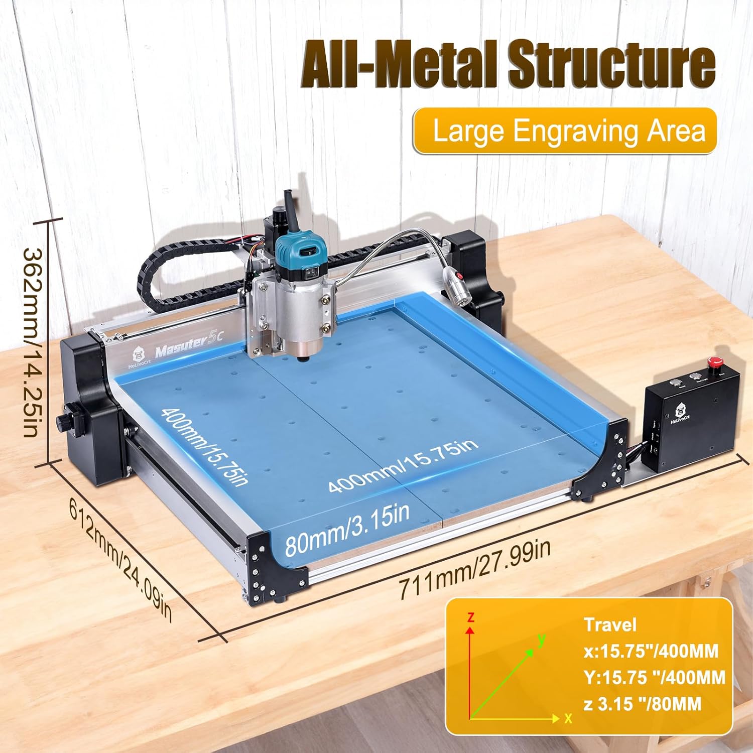 4040 5C Plus CNC Router with Custom-Made 800W 8000-30000 RPM Trim Router Spindle & ER-11 Collet, 300W Spindle GRBL Control 3-Axis Engraving ±10mm Accuracy Milling Engraving Metal