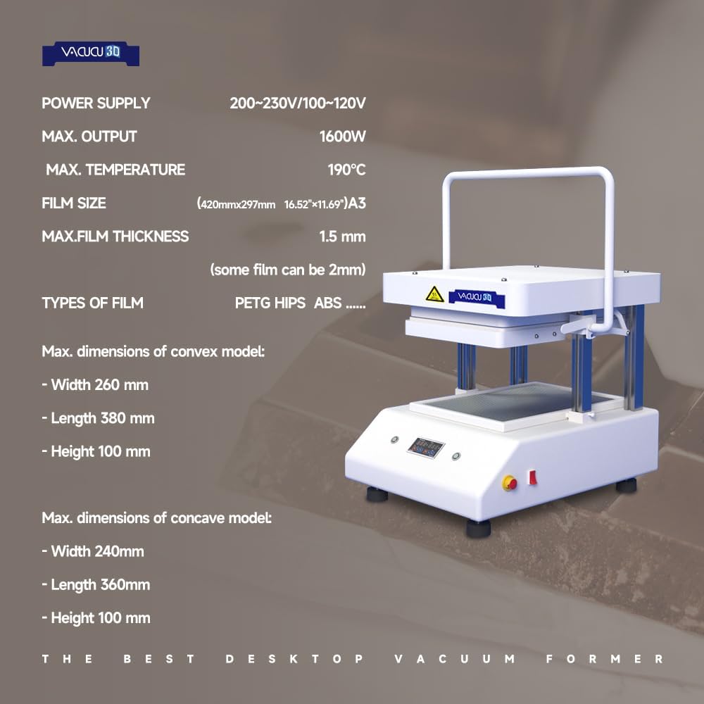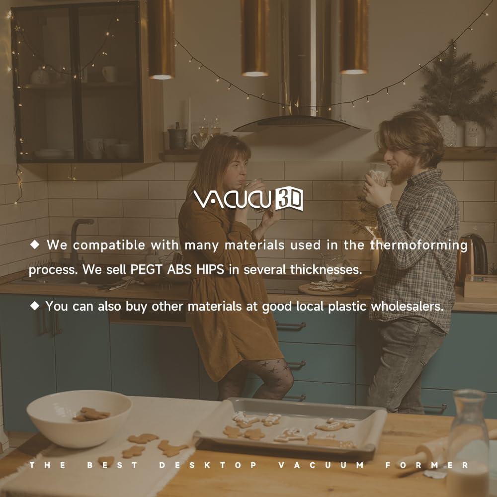 we don't use infraed temperature measurement , so can use the transparent films. Most of popular films for vacuum former PETG, cheaper and safety for food.