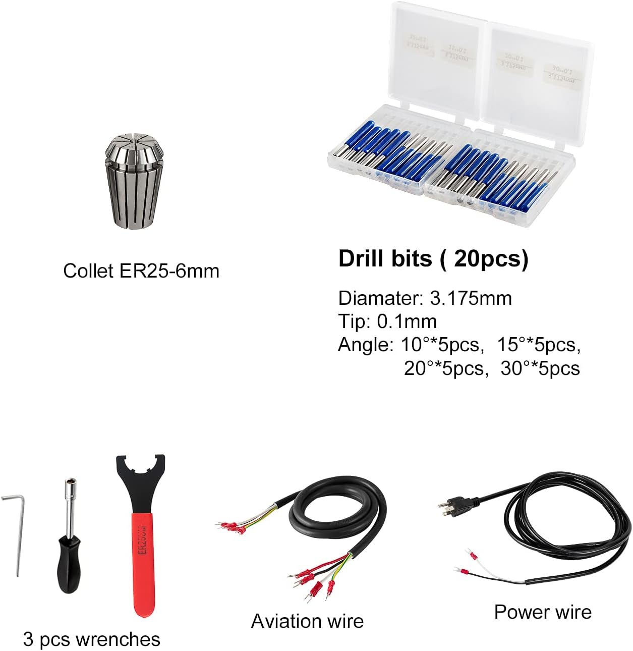 It includes 1pcs Collet ER25-6mm,