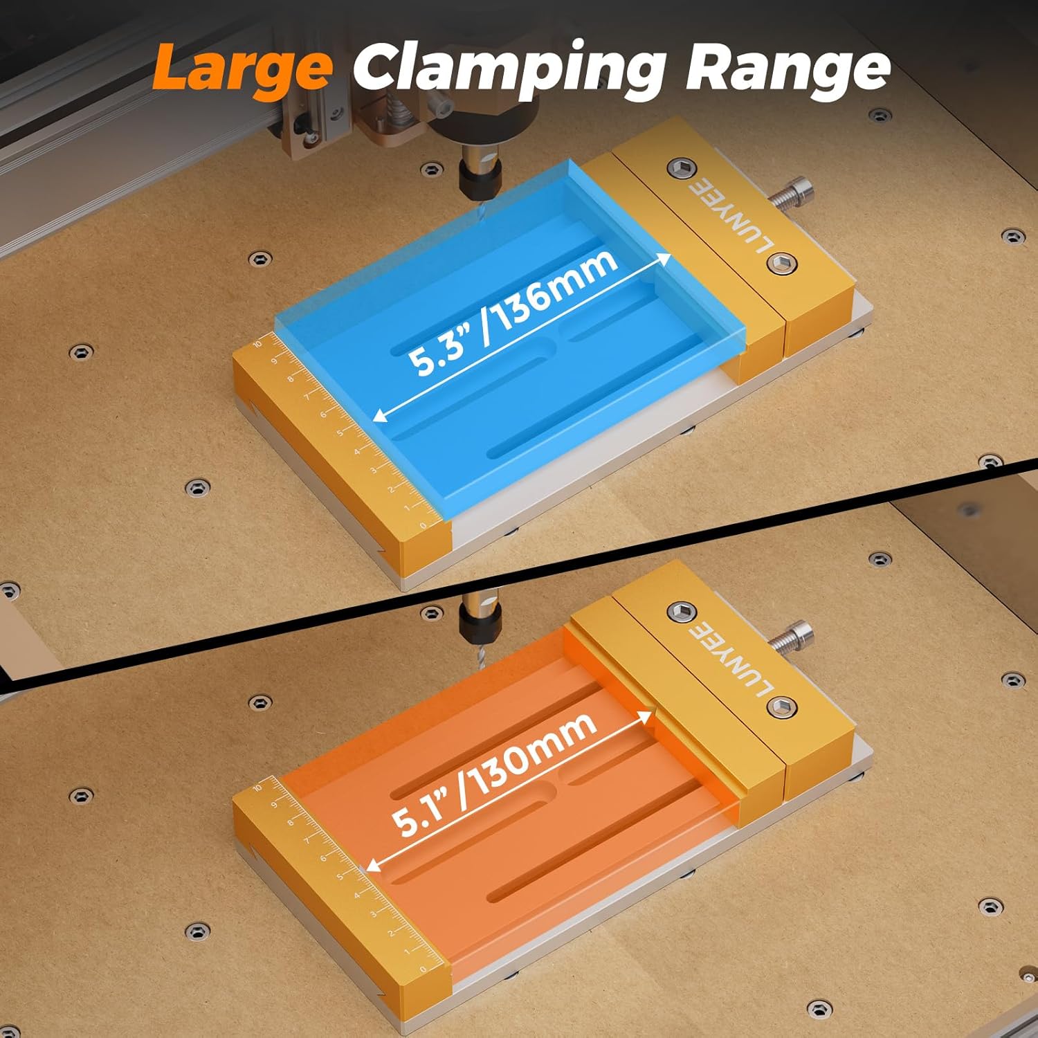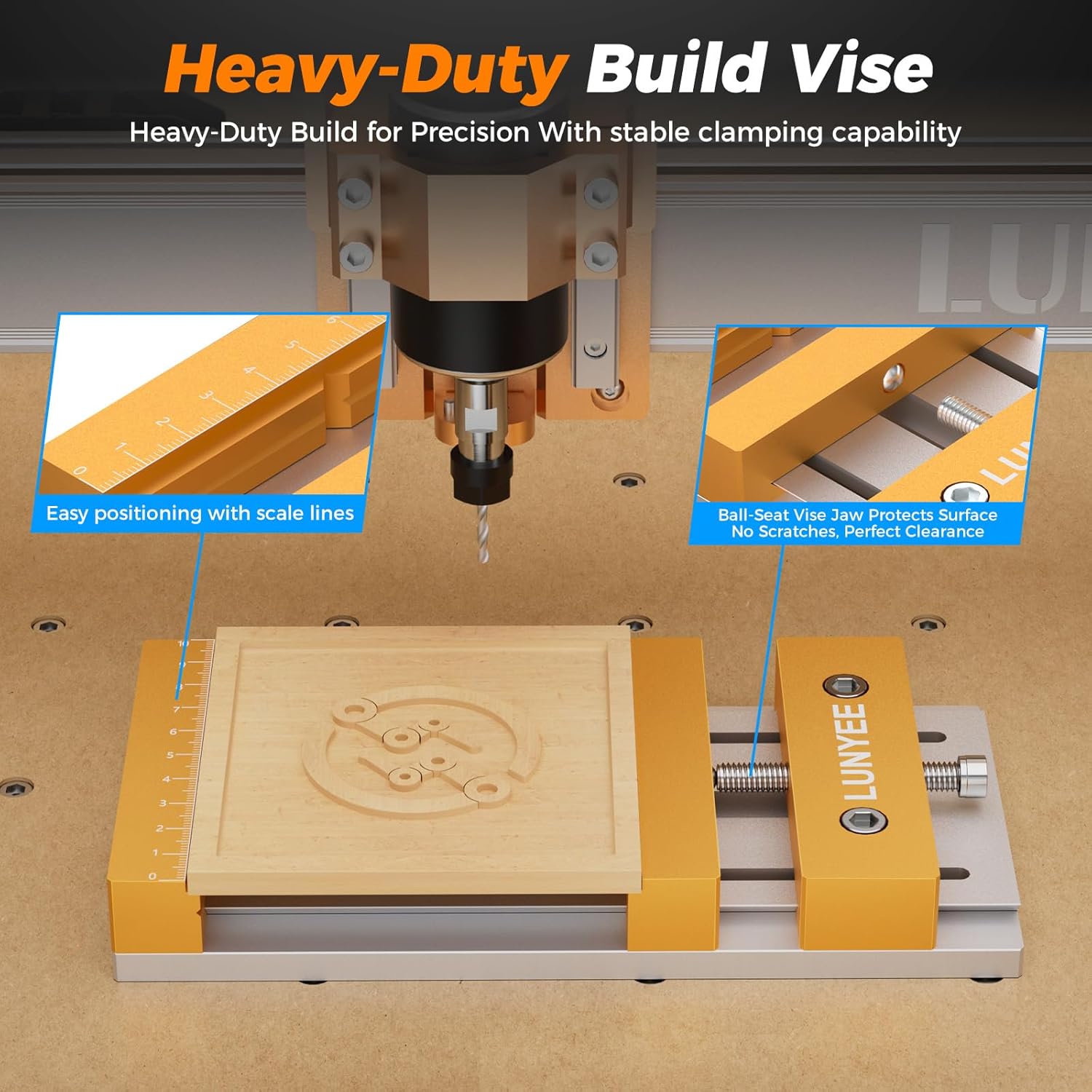 CNC Vise Worktable for Desktop CNC Router Machines – 7.87” x 3.94” (20x10cm), High Precision, 136mm Clamping Range, Stable Design for Woodworking & Metalworking