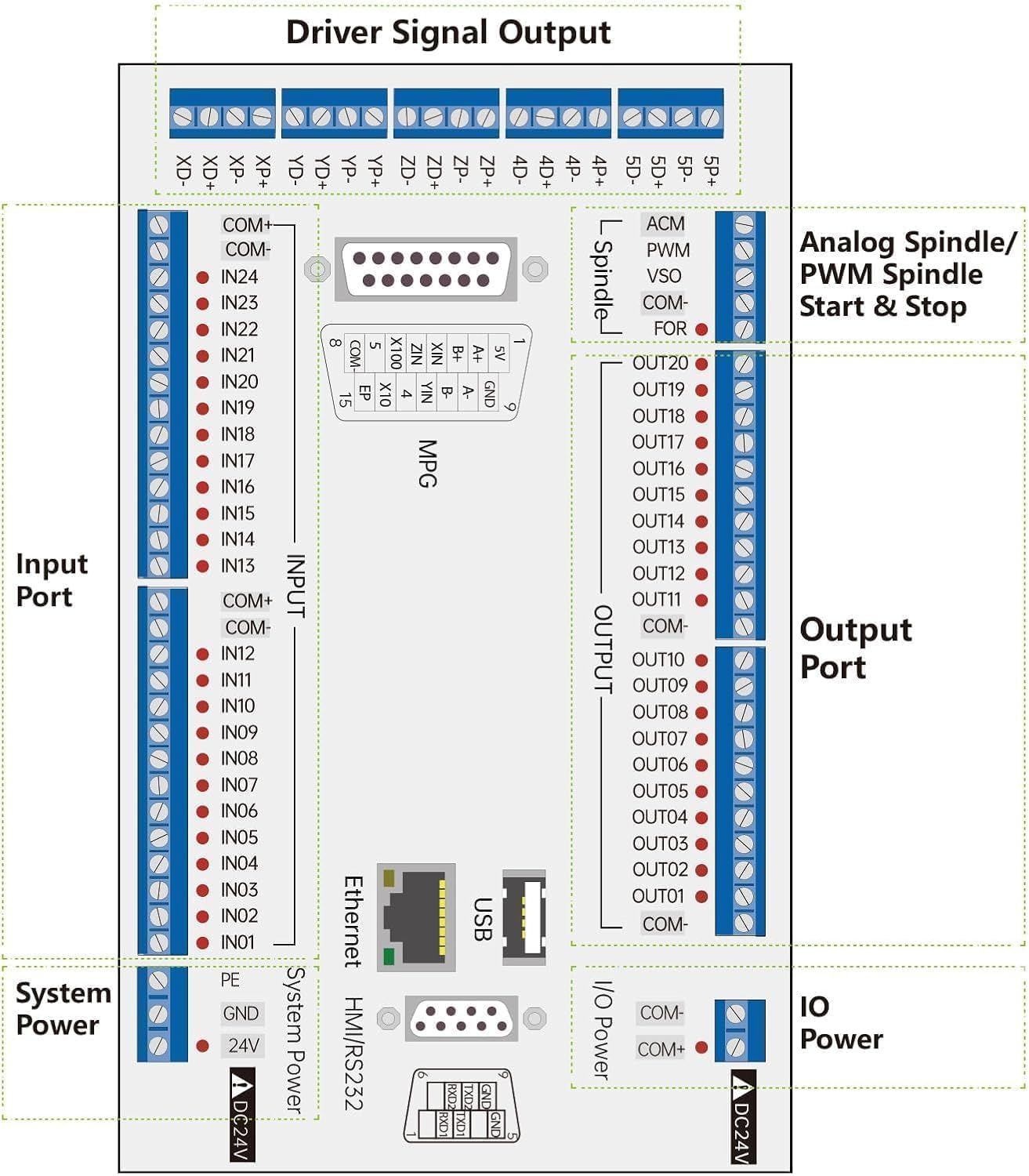 CNCTOPBAOS DDCS Expert 5 Axis CNC Controller System Offline Stand-Alone PLC Servo Stepper Motor Motion Control 1000KHz with MPG Handwheel with M3K Extended Keyboard with Two 75W 24V DC Power Supply