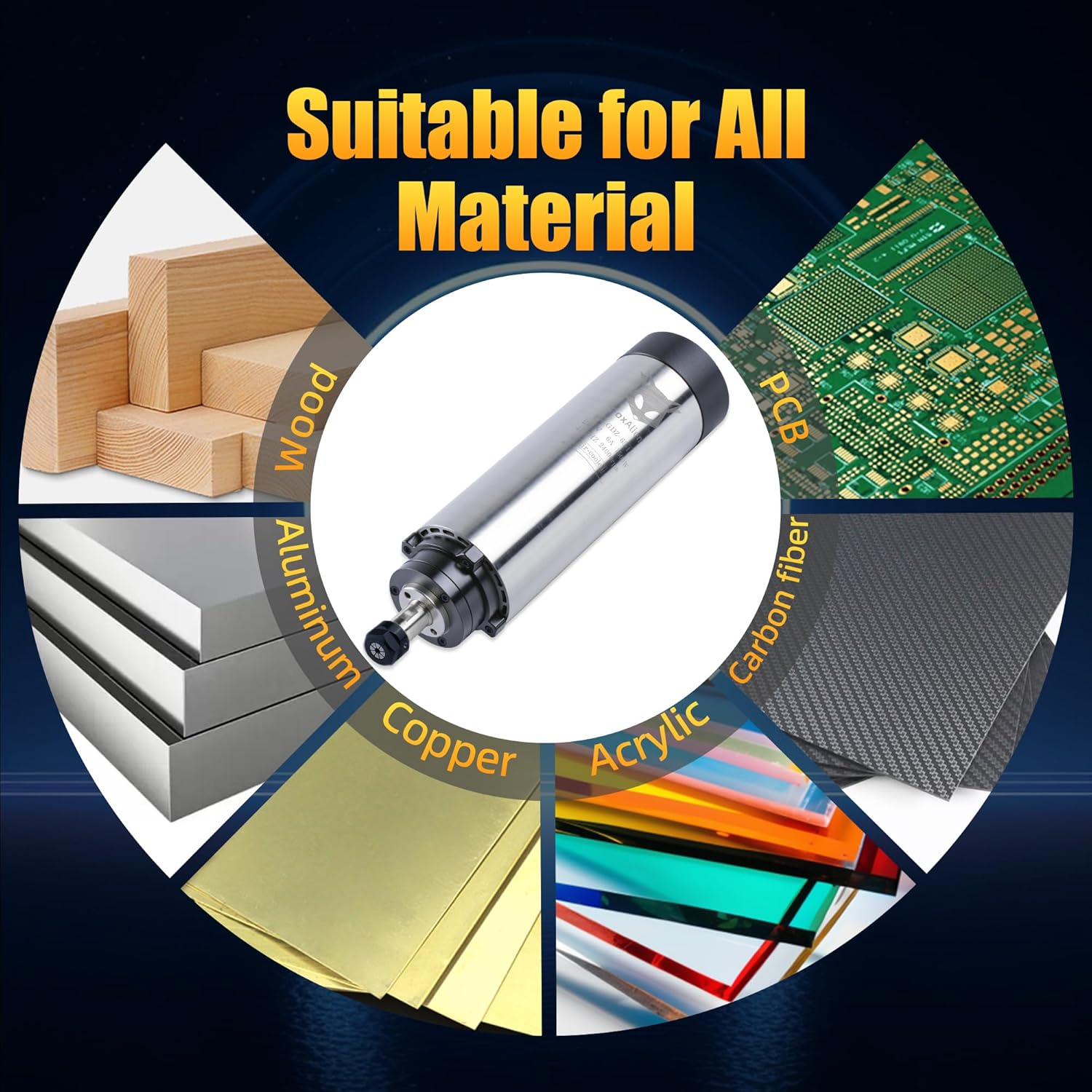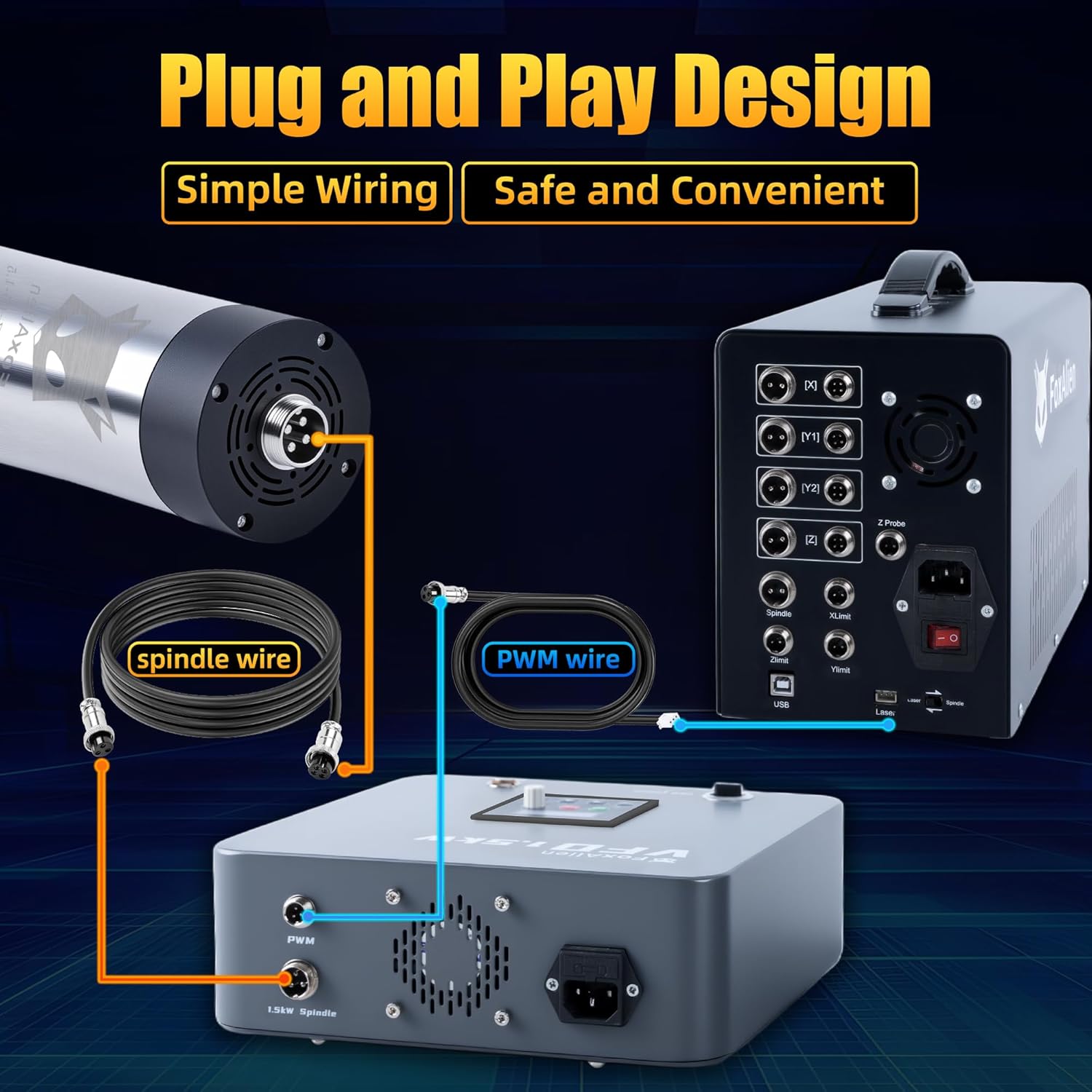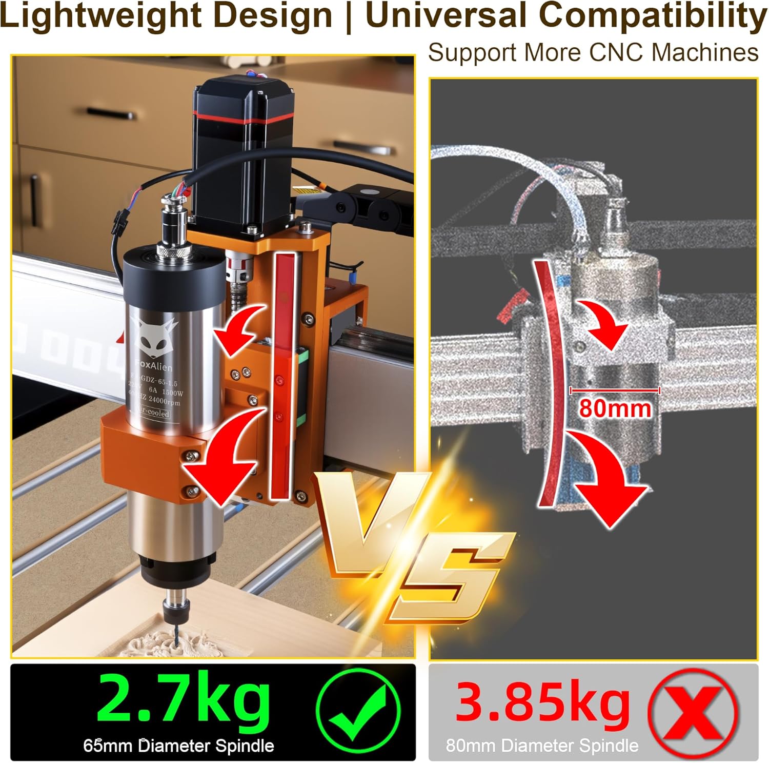 FoxAlien 1.5KW VFD Air Cooled CNC Spindle Motor Kit for CNC Router Machine, 65mm Diameter 24000 RPM Spindle for Wood Acrylic Aluminum Copper Carving Cutting