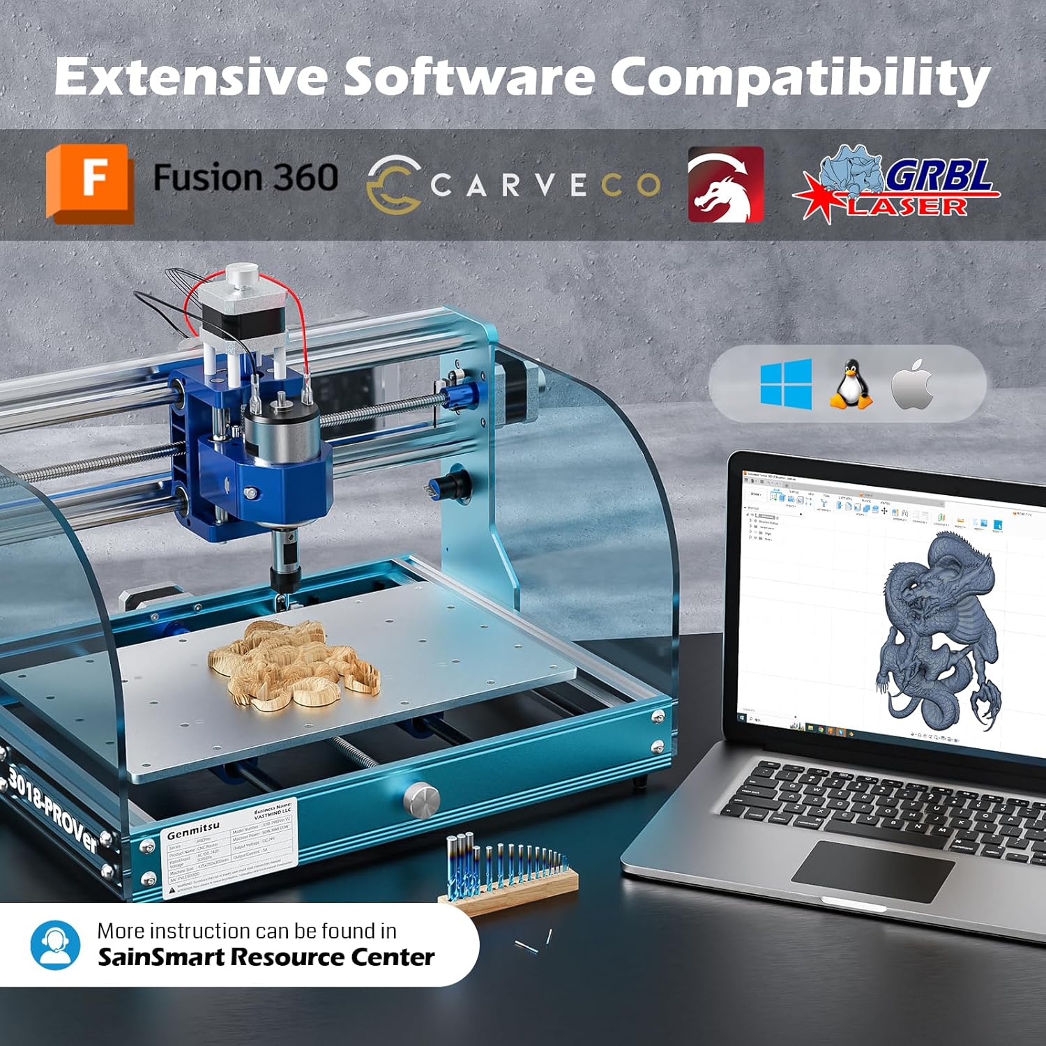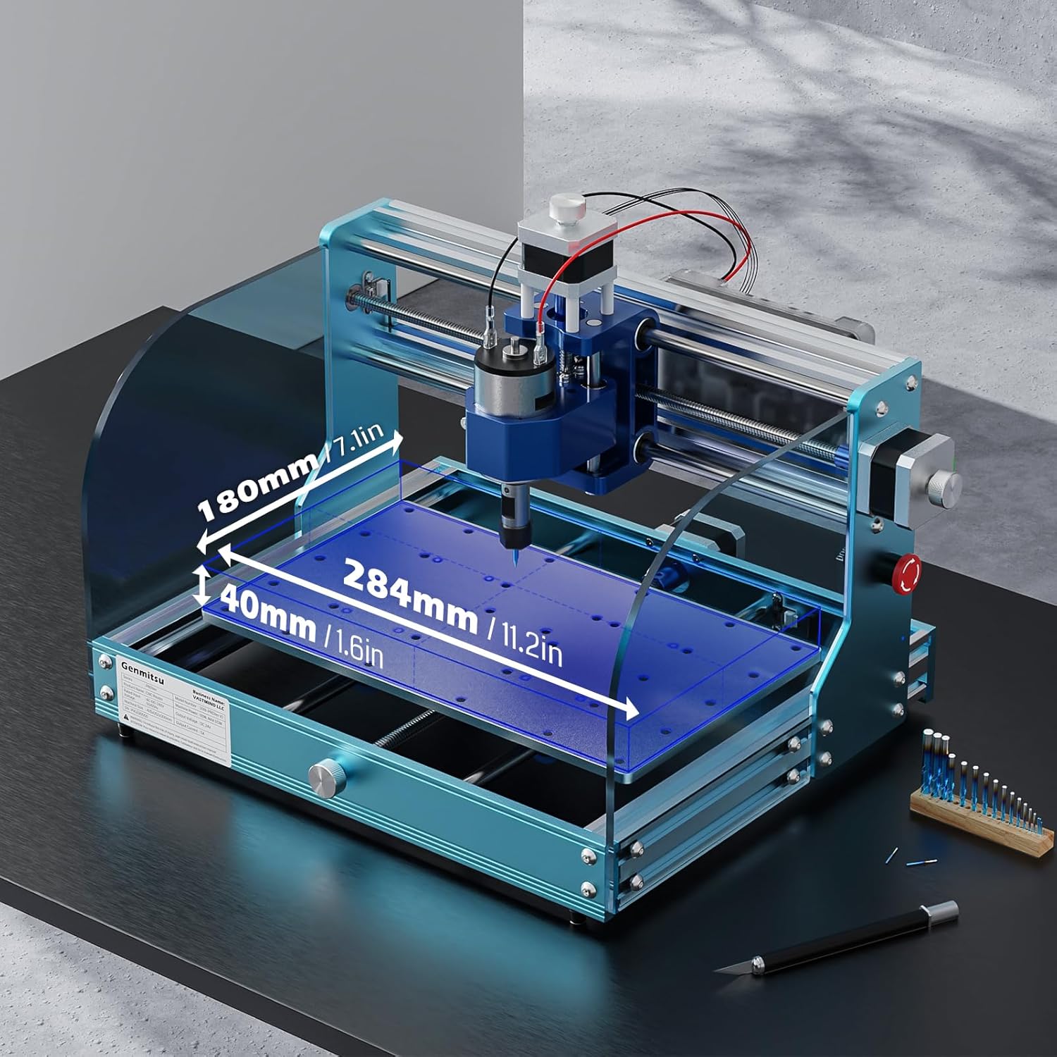 Genmitsu 3018-PROVer V2 CNC Milling Machine, Desktop CNC for Beginner with Limit Switches & Emergency-Stop, Upgraded Z Axis Aluminum Spoilboard, Working Area 284 x 180 x 40mm (11.2 x 7.1 x 1.6 inches)