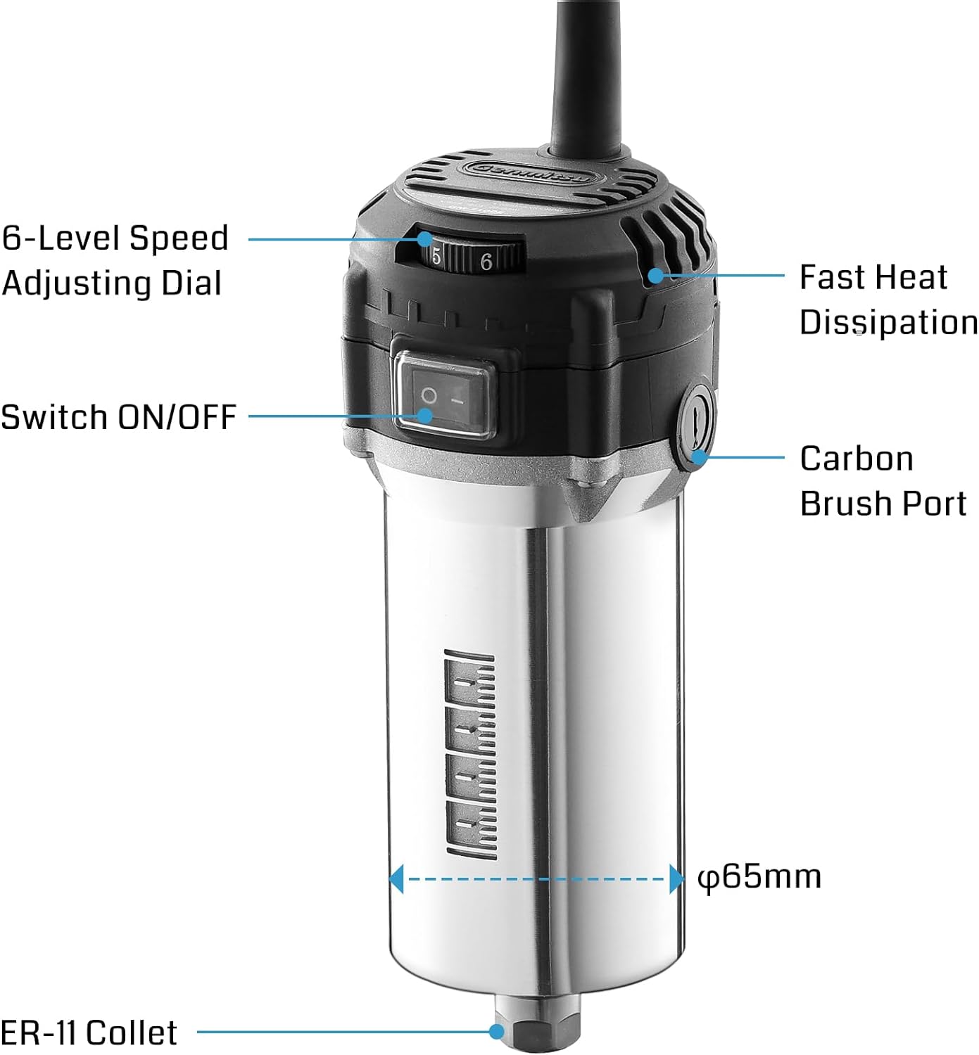 Genmitsu 710W Compact Router 65mm Diameter, 6 Variable Speeds Palm Trimmer Router, with ER11 Collet & 4 Carbon Brushes, Spindle Motor Upgrade for CNC Machines