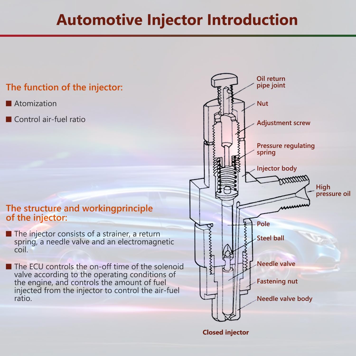- 🚩Adopting microcomputer pressure regulating and controlling technology, stable oil pressure, wide adjustable range, can adapt to equipped with various gasoline injection systems of the automobile, and can realize the nozzle cleaning and detection automation.