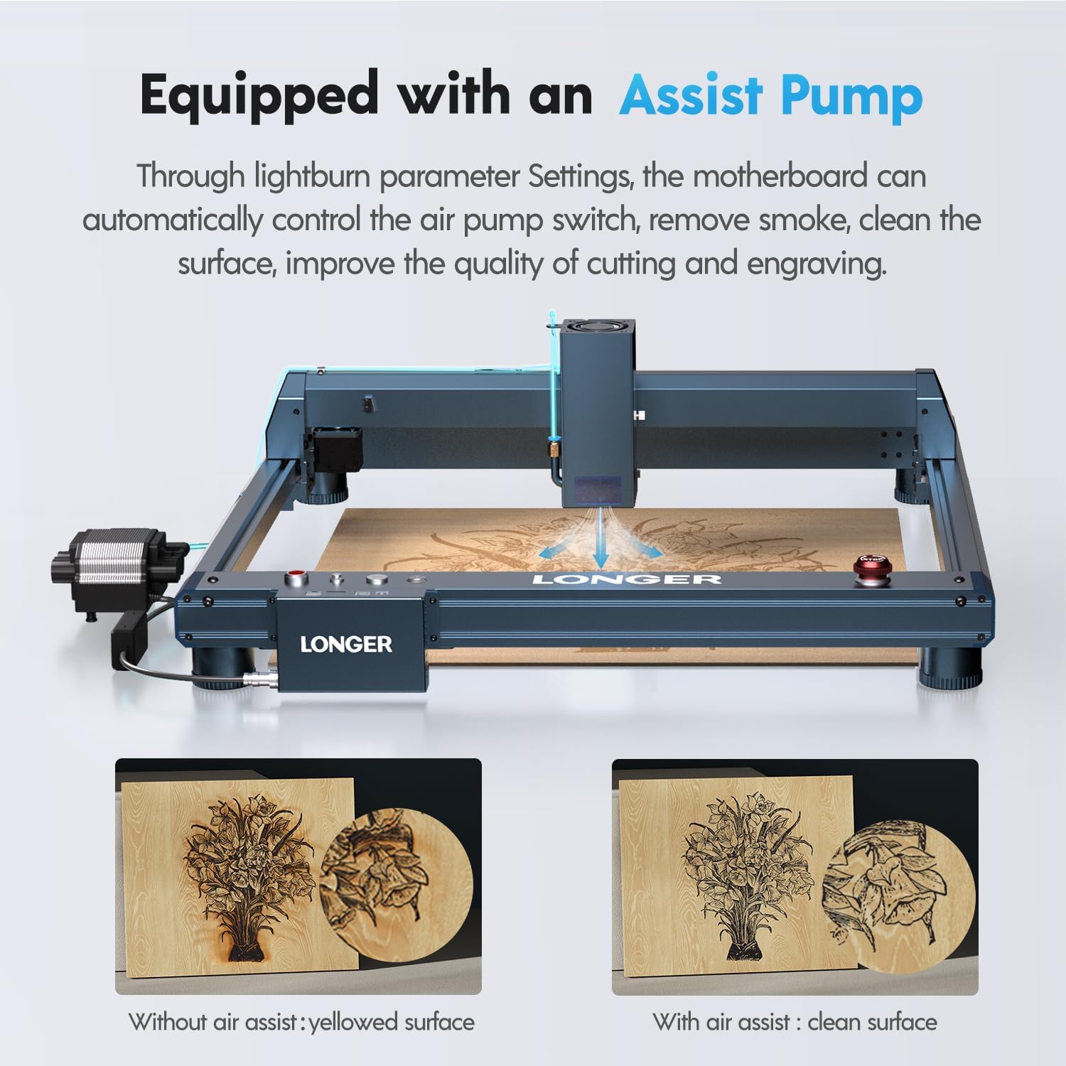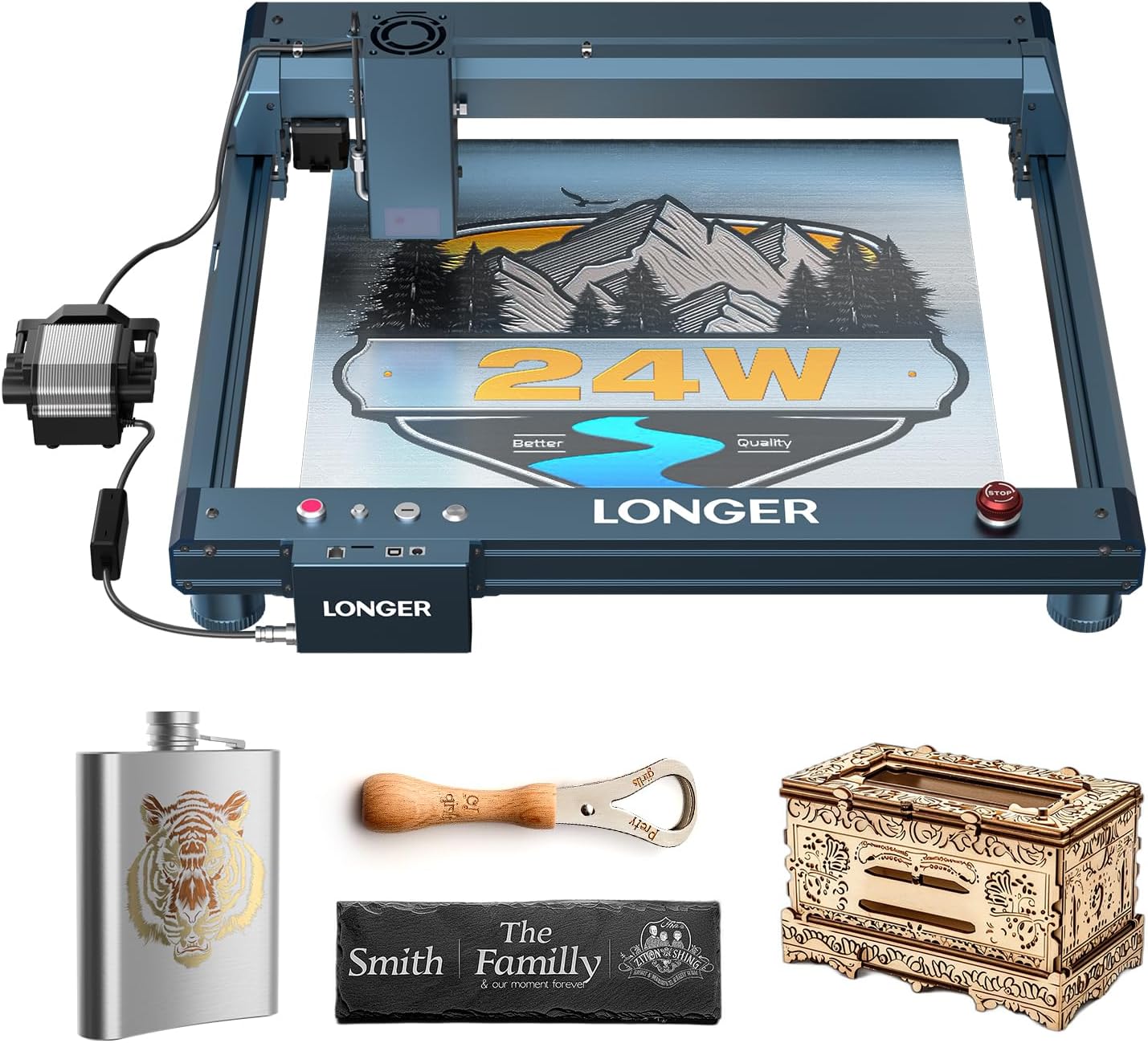 Longer Laser B1, 36000mW Laser Cutter and Engraver with a 32-bit High-Speed Motherboard, 30,000mm/min Speed, and Air Assist.DIY, CNC Machine for Wood and Metal, Acrylic, Leather, etc. Laser Class 2