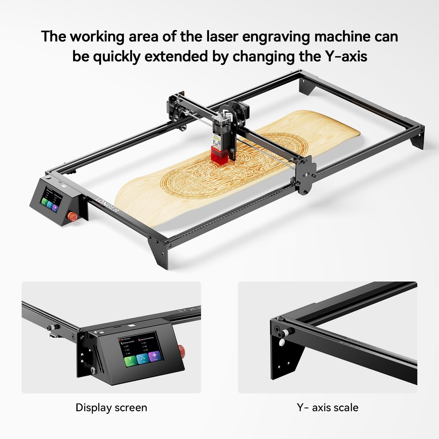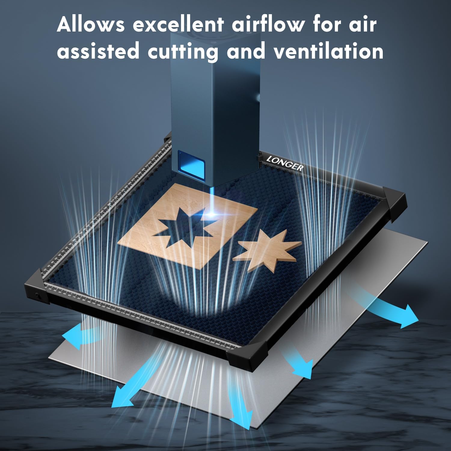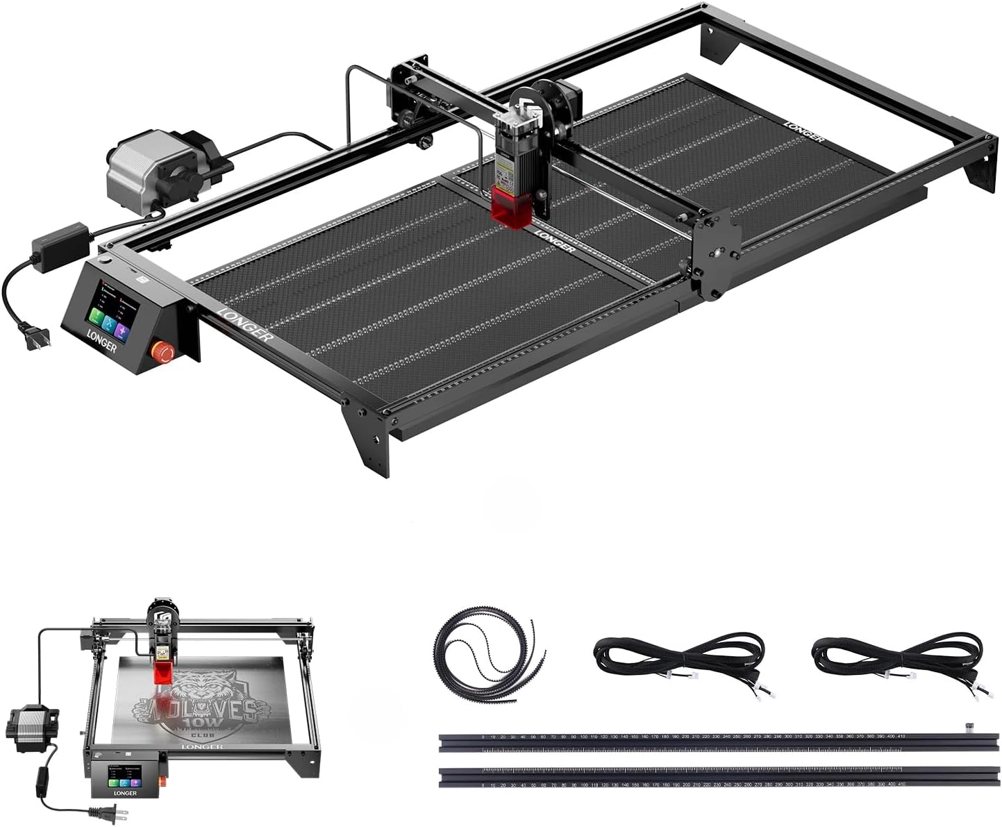 Longer RAY5 20000mW Laser Engraver Bundle with Air Assist, Y-axis Extension & Dual Honeycomb Table (440mm), DIY CNC Cutter for Wood, Metal Coloring, Acrylic, Glass, Leather.
