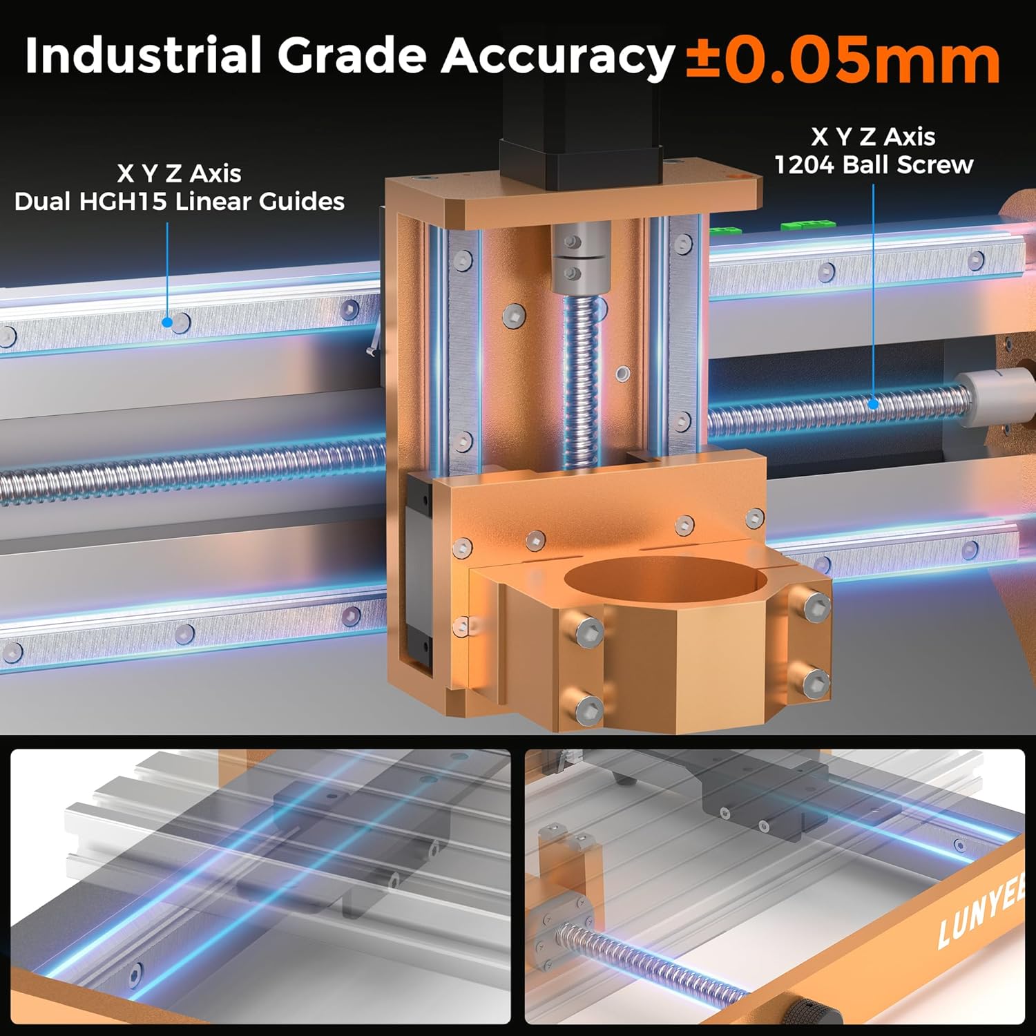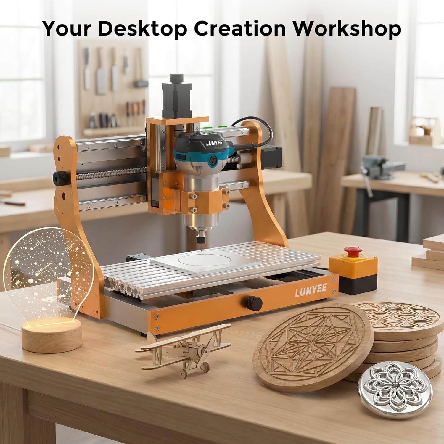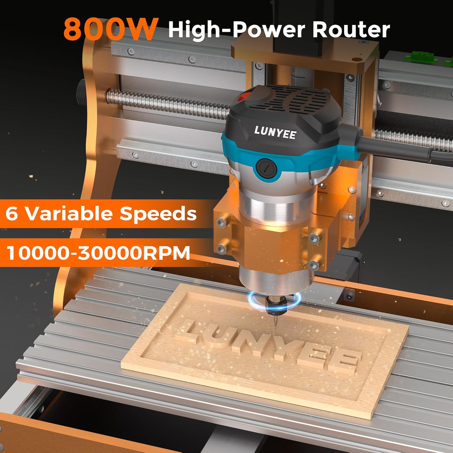 LUNYEE 3020 Nova CNC Router Machine, All-Metal XYZ Axis Linear Guides and Ball screw with 800W Trimmer Router, Suitable for Cutting Aluminum, Brass, Stainless steel, Wood, Acrylic, MDF, and Plastics