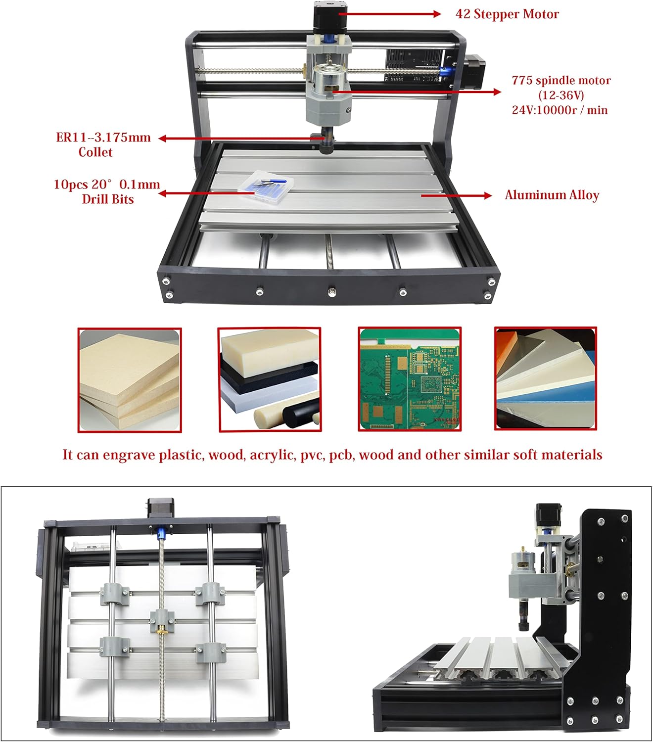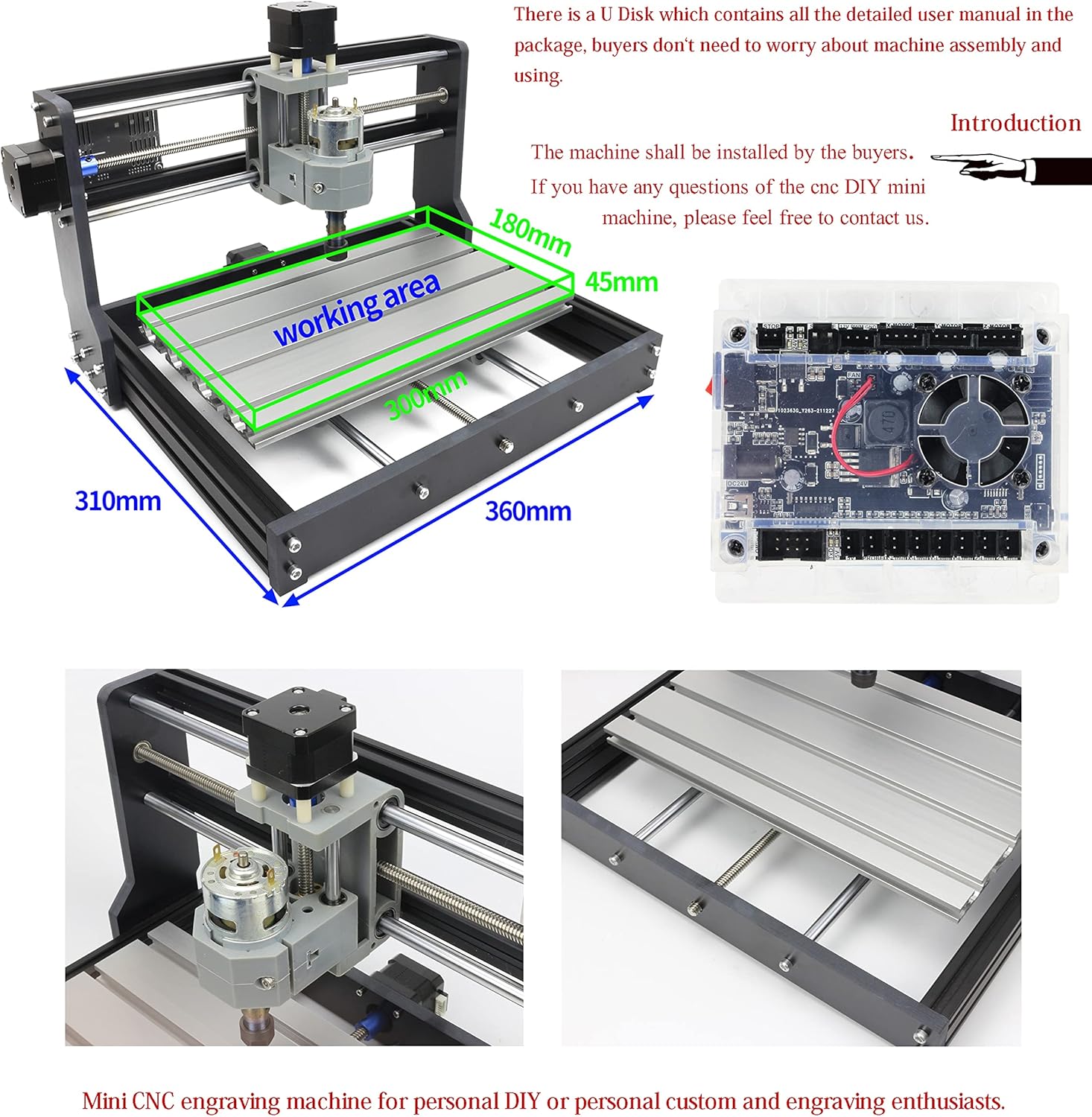 RATTMMOTOR 3018-PRO DIY CNC Router Kit+GRBL Offline Controller, 3 Axis Hobby CNC Router Machine, Plastic Acrylic PVC PCB Wood Mini Desktop Engraving Milling Carving Machine, Working Area 300x180x45mm