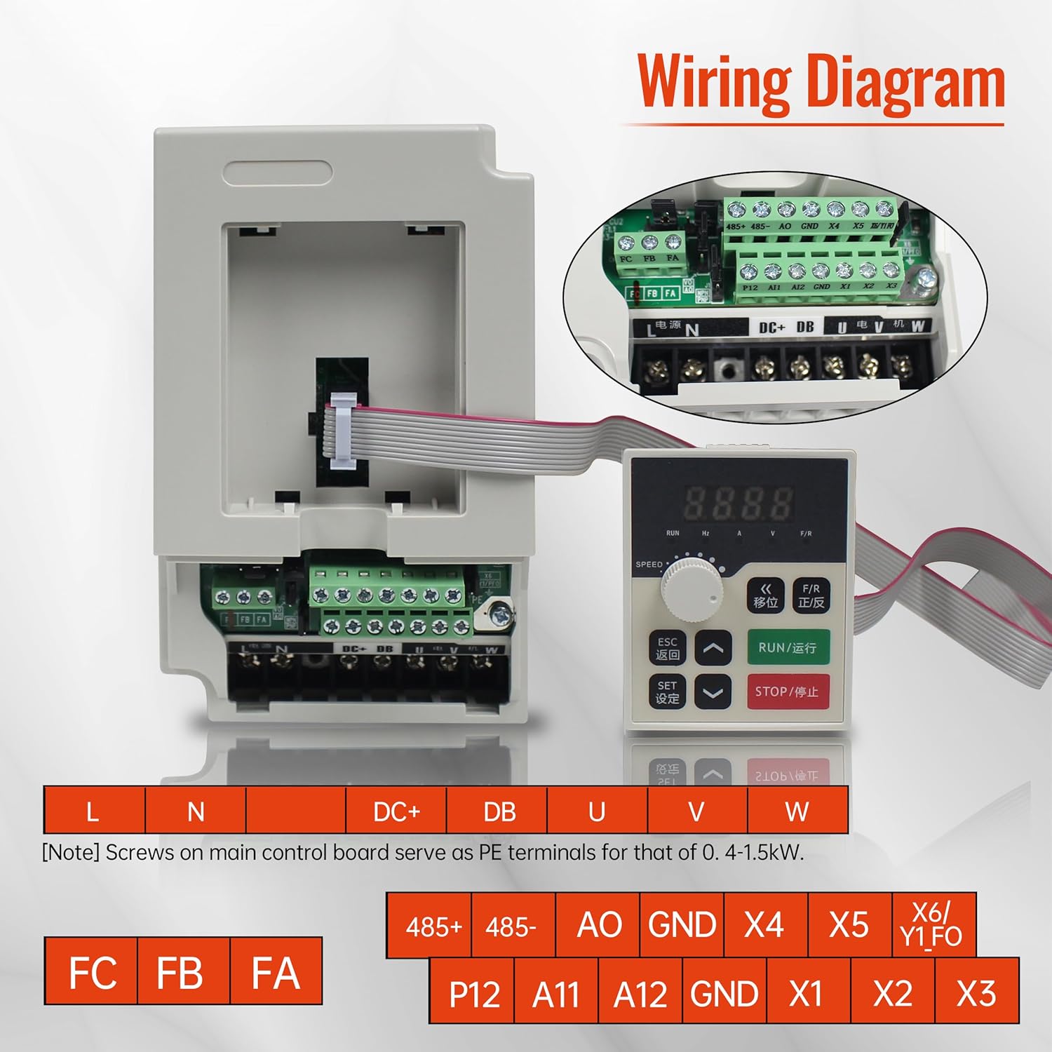 - L / N: Input power terminal, connected to singe-phase power