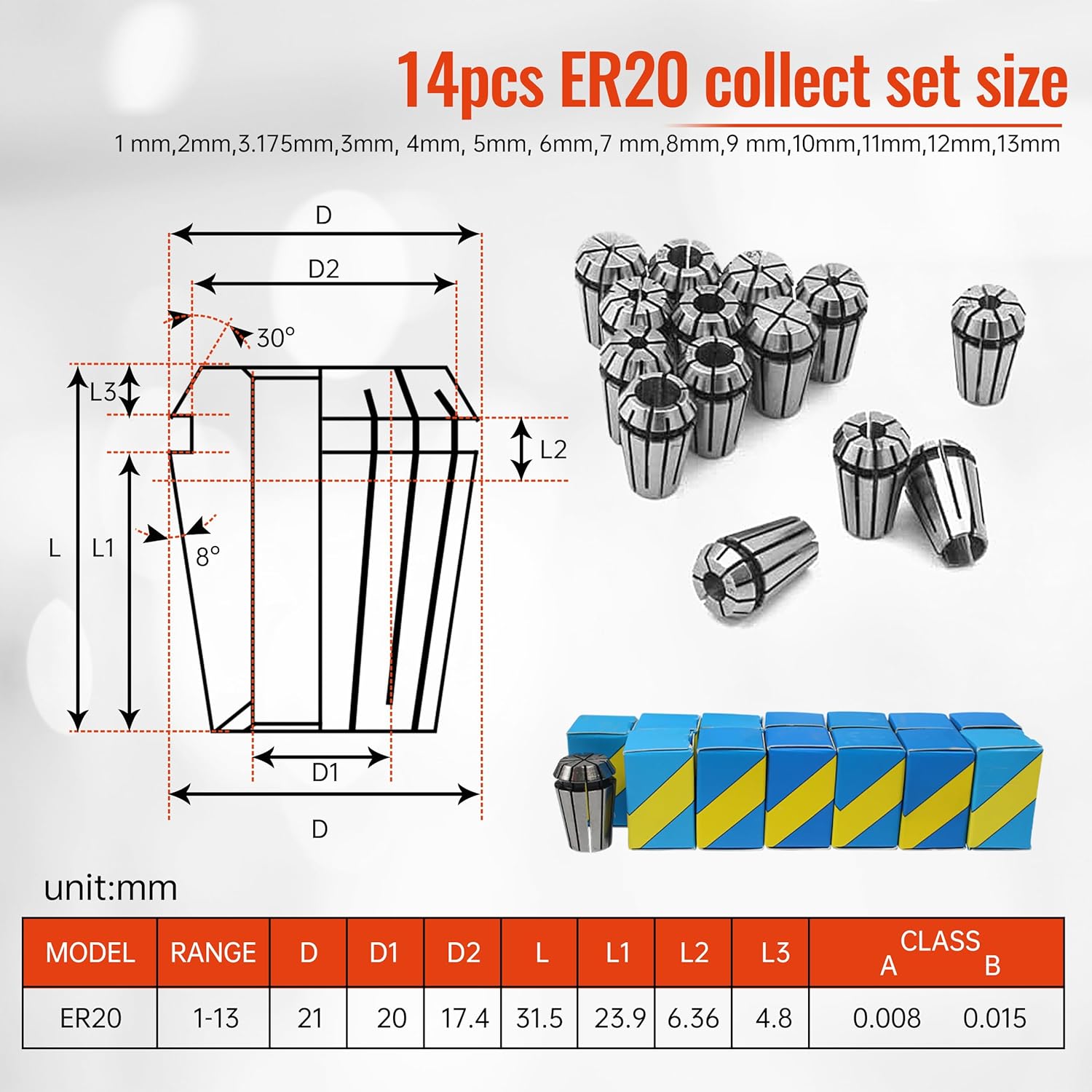 - 1 Set of ER20 collet(14pcs)