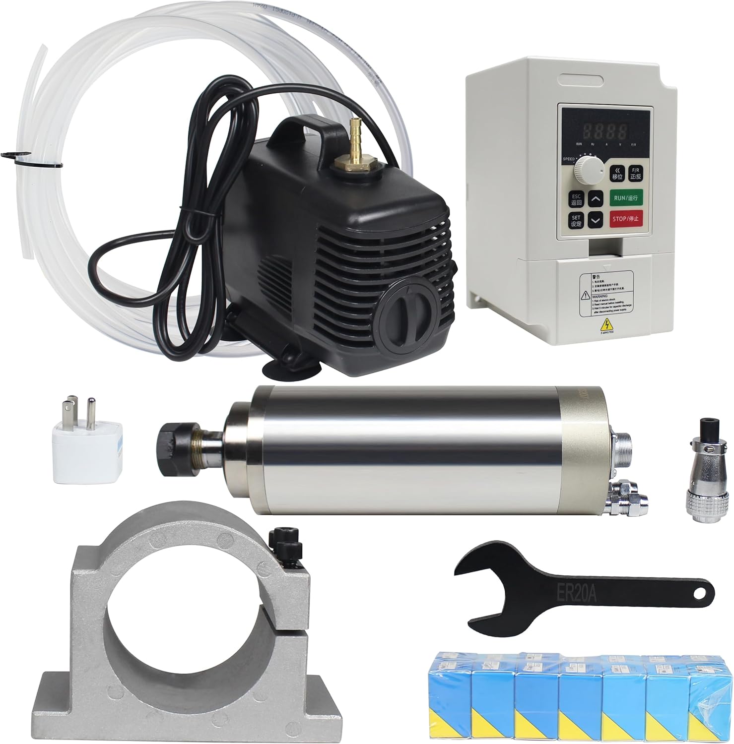 - 1 x 2.2KW 110V water-cooled spindle motor ER20