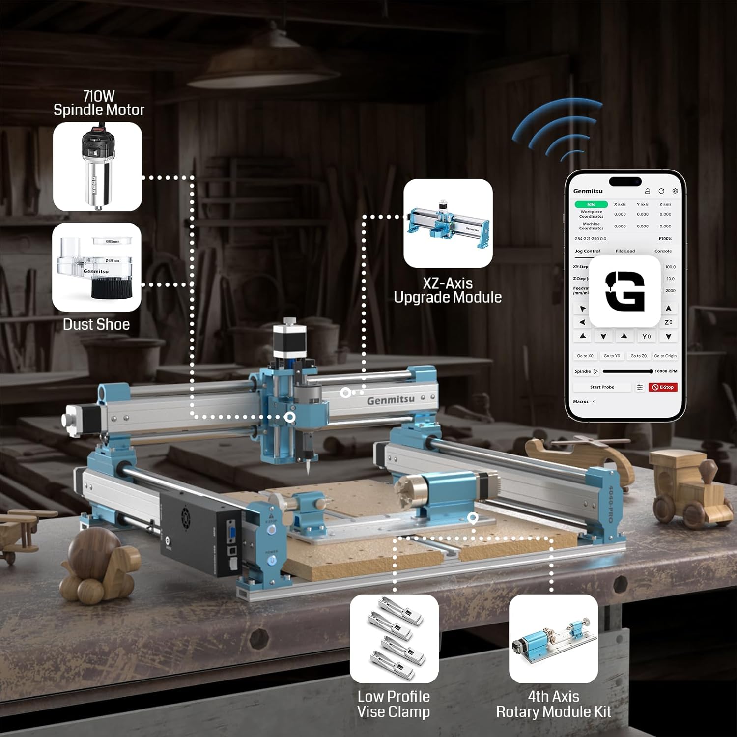 SainSmart Genmitsu 4040 PRO CNC Milling Machine, Support 4-Axis and WiFi Module, Upgraded Lead Screw Drive for Woodworking, Metal and Acrylic Cutting, Milling, GRBL Control