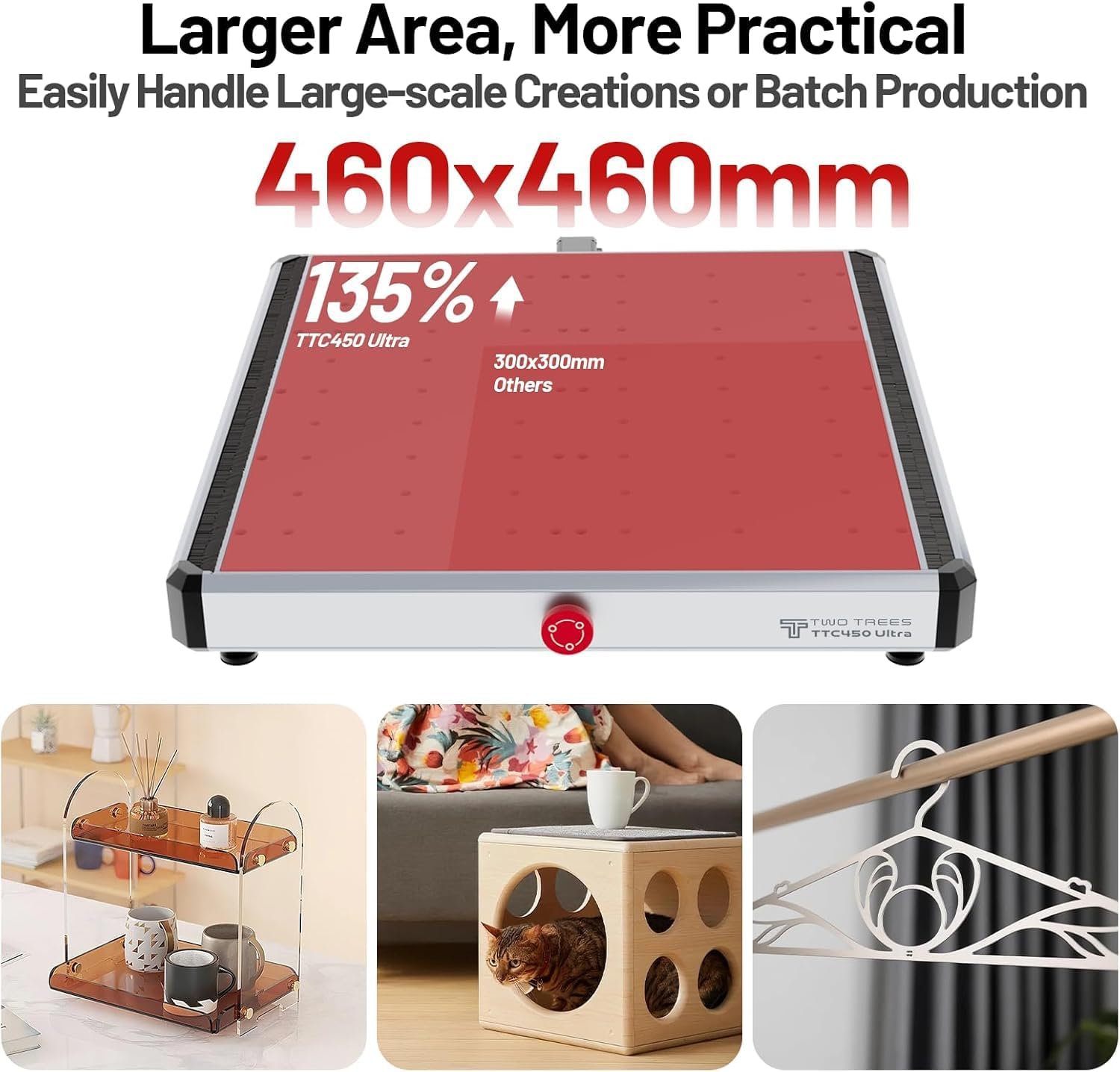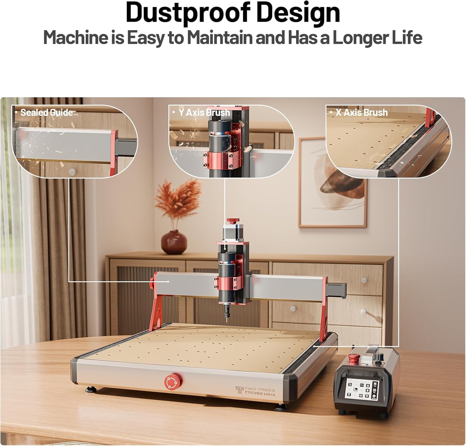 Twotrees TTC450 Ultra CNC Router Desktop CNC Router 465x465mm Large Work Area, 500W Spindle 3.5-inch Touch Screen, All-Metal 3-Axis Engraving Machine for Wood, Acrylic, MDF, Aluminum, Plastic
